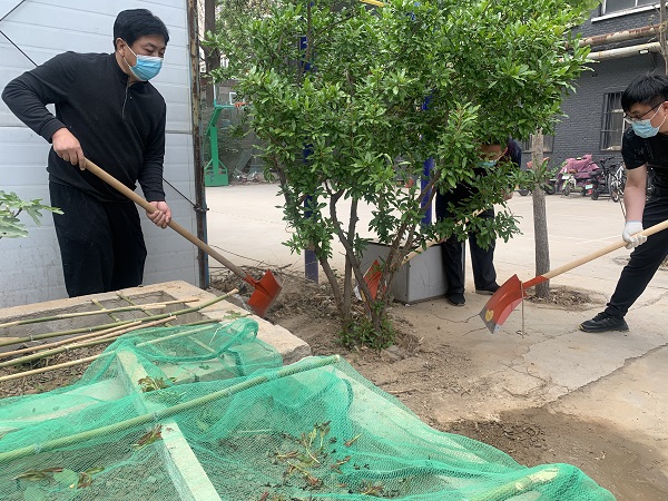 下午一點半,還沒到集合時間,黨員們已經(jīng)在辦公樓下領(lǐng)取工具,有序排隊,整裝待發(fā)。經(jīng)過分公司黨總支書記孫立鋒簡單的講話和小組分工后,大家各自拿著掃帚、鐵鍬等工具投入到負責(zé)的區(qū)域。首先大家對院內(nèi)路面、綠化帶、車棚、門廳、大門洞等區(qū)域進行了打掃和清理。勞動過程中,分公司班子成員分成四隊,孫立鋒帶頭負責(zé)打掃職工活動室周邊以及車棚的犄角旮旯,主任會計師孫春泉帶頭負責(zé)打掃辦公樓東側(cè)死角位置,開發(fā)副經(jīng)理高青帶頭打掃樓后狹窄過道,主任經(jīng)濟師孔艷艷帶頭擦拭門洞宣傳欄、清理花池中的枯枝、雜草。長期“飽經(jīng)風(fēng)霜”的門洞宣傳欄一層塵土,孔艷艷全然不顧塵土飛揚,踩著凳子擦拭高處。在清理車棚衛(wèi)生時,為達到更好的清理效果,需要將每輛車移位,搬動電瓶車是個力氣活,開發(fā)科科長許茂茂帶頭,將電瓶車一一來個“平穩(wěn)大挪移”,清出垃圾后車輛重新擺放整齊。