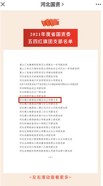 5月上旬,喜訊傳來!五分公司團(tuán)總支受到河北省國資委團(tuán)委、省國資委青聯(lián)聯(lián)合表彰,被評(píng)為“2021年度河北省國資委五四紅旗團(tuán)支部”。