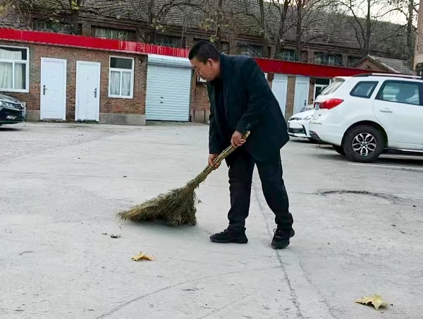 作為兼任分公司院內(nèi)五家單位的警衛(wèi),王亮沒把“守大門”當(dāng)成簡(jiǎn)單的值守,而是用“多走一步、多想一層”的主動(dòng),把院區(qū)安全與服務(wù)做得既扎實(shí)又貼心。夜班值守時(shí),他更把“巡查”做成了“安全隱患排查”,仔細(xì)檢查門窗、消防器材及車輛停放。有次巡查,他注意到有車輛未關(guān)車窗,當(dāng)即聯(lián)系了車主,確保安全。而每天清晨的打掃,更像是他對(duì)“家”的細(xì)致守護(hù)的延伸。每天六點(diǎn)天剛亮,多數(shù)同事還沒出門,他已經(jīng)扛著掃帚、拎著簸箕,在機(jī)關(guān)前后院忙活開了。落葉飄在花叢里,他就蹲下來一片一片撿;紙屑卡在磚縫里,他用小夾子慢慢夾出來,連墻角的雜草都要順手拔掉?!霸凼刂@院兒,不僅要保安全,更要讓大伙兒上班看見清亮的環(huán)境,心里敞亮。”王亮的話語樸實(shí)無華。在他眼里,“警衛(wèi)”不只是一份工作,更是守護(hù)分公司“家”的責(zé)任,這份盡責(zé)與主動(dòng),正是“把院區(qū)當(dāng)自家”最樸素的表達(dá)。