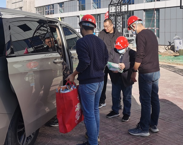 結(jié)合檢查更節(jié)儉。今年公司工會改變以往“冬送溫暖”由工會安排人員專門到項目慰問的形式,而是結(jié)合公司領(lǐng)導(dǎo)到項目檢查工作時,由公司領(lǐng)導(dǎo)代表工會對項目一線職工進(jìn)行慰問,既帶去公司的關(guān)懷,又節(jié)省了差旅費(fèi)用。公司黨委書記、董事長董富強(qiáng)為五分公司承建的東立實(shí)業(yè)集團(tuán)鐵嶺大伙房粉磨站項目職工,公司黨委副書記、董事、總經(jīng)理唐志強(qiáng)和黨委常委、副總經(jīng)理劉金河為四分公司寧晉項目職工,公司黨委副書記、紀(jì)委書記、工會主席李懷生為九分公司山西臨汾威頓項目職工送去了慰問品,其他項目以快遞形式把慰問品送到一線職工手中,做到14個直管項目一線職工慰問全覆蓋,充分體現(xiàn)了公司工會對一線職工的關(guān)懷與愛護(hù)。