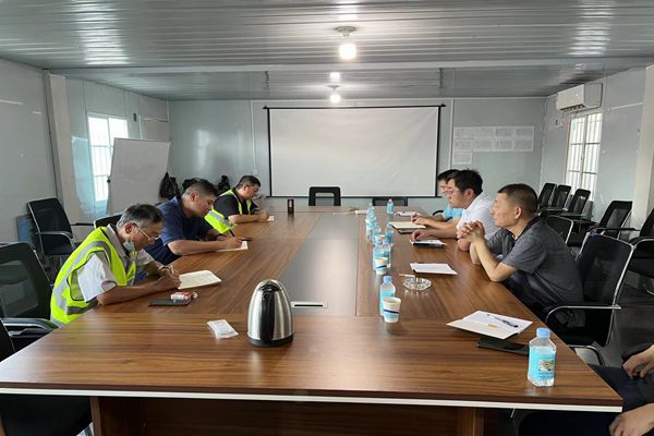 張新煜一行和項(xiàng)目經(jīng)理王鵬飛、業(yè)主項(xiàng)目負(fù)責(zé)人王立杰共同對(duì)現(xiàn)場(chǎng)進(jìn)行了檢查。一行人到達(dá)生料均化庫(kù),對(duì)庫(kù)體的整體外觀質(zhì)量、門洞口的方正進(jìn)行了檢查,張新煜稱贊庫(kù)體總體質(zhì)量控制較好,庫(kù)體的整體垂直度、混凝土外觀顏色把控到位。順著現(xiàn)場(chǎng)主道路查看燒成窯中1#、2#、3#墩體時(shí),張新煜對(duì)正在施工的窯中墩體模板、螺桿排布提出表?yè)P(yáng),要求項(xiàng)目部重視并做好墩體整體施工完后的螺桿切除、防銹工作,同時(shí)做好對(duì)周轉(zhuǎn)材料、機(jī)械的控制。在煤粉制備單體工程,他查看了框架柱垂直度并表示滿意,要求項(xiàng)目部在施工過程中注意細(xì)節(jié)把控,做精品工程,尤其是在柱接茬位置、庫(kù)體垂直度和防流墜措施等方面,要嚴(yán)格要求管理人員及施工班組做到精益求精。最后張新煜要求項(xiàng)目做好防暑降溫工作。在檢查過程中,王立杰代表業(yè)主表達(dá)了對(duì)我公司的感謝以及對(duì)在建項(xiàng)目在質(zhì)量、進(jìn)度及安全文明施工方面的高度認(rèn)可,并表態(tài)后期產(chǎn)業(yè)園項(xiàng)目希望繼續(xù)與我公司合作。
