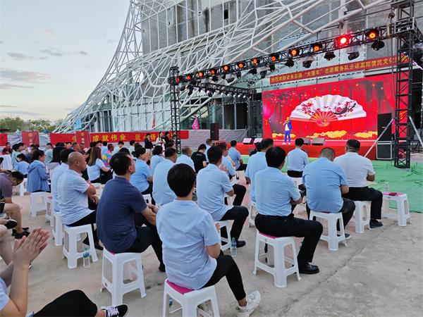 據(jù)悉,項目部高度重視此次志愿服務(wù)活動,統(tǒng)籌安排人員,積極與志愿服務(wù)隊對接,在施工現(xiàn)場規(guī)劃出一片場地,進行清理和平整,供舞臺搭建使用。在活動前一天,項目部在微信群內(nèi)發(fā)通知,將活動內(nèi)容逐項說明,確保每一名職工知曉。為保證職工能夠按時觀看節(jié)目,項目部食堂準(zhǔn)備了便于食用的晚餐,并提前購買了礦泉水、水果等放在現(xiàn)場,方便大家隨時取用。