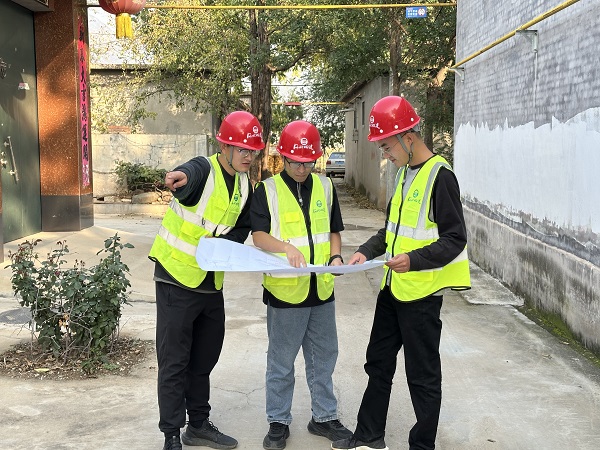 因地下管線復(fù)雜,施工中,難免會出現(xiàn)挖斷地下管道的情況,如果被挖斷的管道不能及時(shí)得到修復(fù),會影響村民用水。為最大限度減輕施工對村民生活的影響,項(xiàng)目部做實(shí)做細(xì)施工前的準(zhǔn)備工作,先聯(lián)系熟悉原敷設(shè)管道的村民,摸清摸透地下管道具體位置后再開挖,如遇敷設(shè)管線較多的部位,安排技術(shù)嫻熟的師傅人工挖掘安裝管道,同時(shí)安排人員準(zhǔn)備好搶修的材料管件,一旦挖斷管道,立即現(xiàn)場搶修。在同一現(xiàn)場施工的其它單位幾乎每天都有因耽誤村民用水被投訴的情況,元氏管網(wǎng)項(xiàng)目施工的標(biāo)段很少發(fā)生。“管溝挖得深、回填干得快,而且,很少耽誤俺們用水?!北O(jiān)理單位到現(xiàn)場檢查時(shí)聽到老百姓對元氏管網(wǎng)項(xiàng)目部如此評價(jià)。甲方也經(jīng)常在微信工作群夸贊該項(xiàng)目部施工的標(biāo)段是“放心工地”。