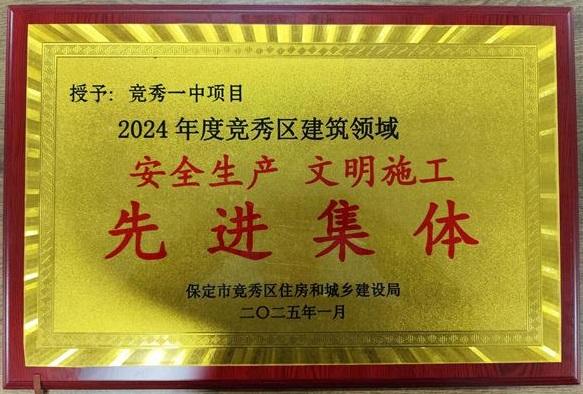 2025年1月14日,在保定市競(jìng)秀區(qū)住房和城鄉(xiāng)建設(shè)局舉辦的2024年度總結(jié)表彰大會(huì)上,六分公司競(jìng)秀一中項(xiàng)目部被授予“安全生產(chǎn)文明施工先進(jìn)集體”榮譽(yù)稱號(hào)。