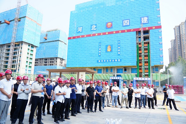 仲夏時節(jié),萬物并秀。6月12日上午,二分公司西三教城中村改造回遷項目部,迎來了由河北建工集團總工程師李占武帶隊,各分公司生產(chǎn)經(jīng)理、安全科長、項目經(jīng)理等組成的百人觀摩團。本次觀摩全面展現(xiàn)了項目部在智慧賦能安全生產(chǎn)領(lǐng)域的深耕成果,一系列安全文明施工標準化做法和智能化設備的實際應用成效,贏得了觀摩人員一致好評。