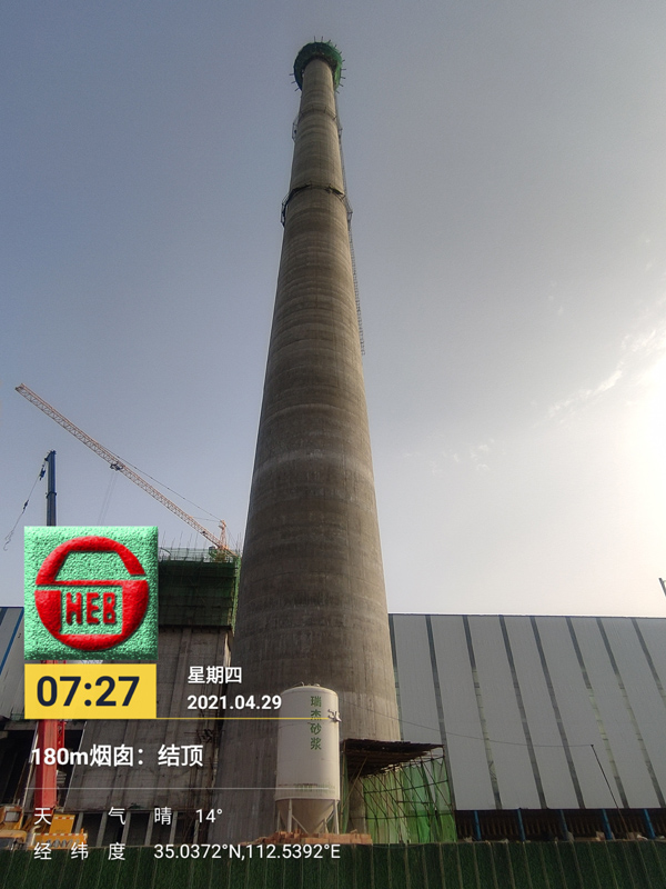 4月29日,六分公司河南金馬項目部完成了關(guān)鍵施工節(jié)點——180m煙囪土建工程順利結(jié)頂,刷新了河南省濟源市最高建(構(gòu))筑物紀錄。