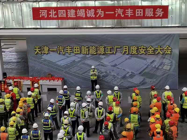 5月27日上午,由業(yè)主天津一汽豐田汽車項(xiàng)目部主辦的“新能源工廠建設(shè)項(xiàng)目月度安全大會(huì)”,在天津分公司施工的樹脂車間現(xiàn)場召開。中建、中冶、浙江寶業(yè)、江蘇江都等23家參建單位,1650人參加了大會(huì)。