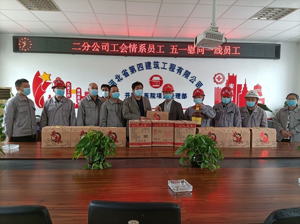 五一勞動(dòng)節(jié)到來之際,二分公司一直掛念著奮戰(zhàn)在項(xiàng)目施工一線的職工。4月30日上午,分公司工會(huì)主席孫立鋒一行代表分公司到石家莊井陘縣醫(yī)院項(xiàng)目,看望慰問項(xiàng)目職工,為奮戰(zhàn)在施工一線的職工送上節(jié)日慰問品和祝福。