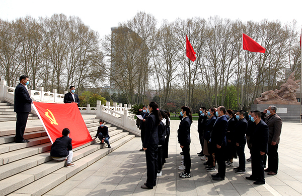 3月31日上午,在五分公司黨總支的組織下,機(jī)關(guān)第一、二黨支部在家黨員、團(tuán)員青年、群眾共三十余人統(tǒng)一著裝,徒步來(lái)到華北軍區(qū)烈士陵園,開(kāi)展“緬懷英烈 愛(ài)國(guó)教育”主題黨日活動(dòng)。為了讓團(tuán)員青年、群眾都受到教育,此次活動(dòng)范圍擴(kuò)大到了全體職工。在紀(jì)念碑前,全體職工向長(zhǎng)眠在此的烈士們致默哀、三鞠躬,之后整齊列隊(duì)、緩步向烈士們獻(xiàn)上自己親自動(dòng)手制作的小白花,隨后面向紀(jì)念碑,右手舉拳,在黨總支書(shū)記賈銀建領(lǐng)誓下,立足崗位鄭重宣誓。