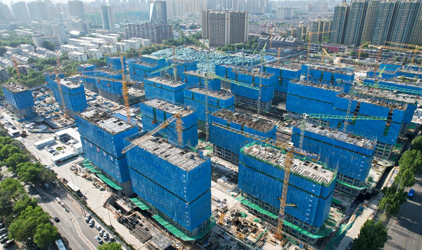目前,項(xiàng)目36棟住宅樓主體結(jié)構(gòu)施工已完成80%,其中D區(qū)1#、2#樓已封頂,進(jìn)入二次結(jié)構(gòu)施工階段,并同步穿插機(jī)電管線及設(shè)備安裝;地下車庫施工完成55%。