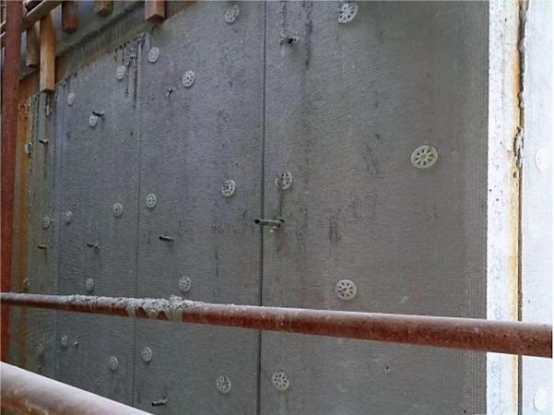 為此,項目部成立專門的課題實施小組,提出利用BIM技術(shù)繪制Revit模型,對復(fù)合保溫板進行統(tǒng)一建模排版、分拆、編號、加工制作,再采用“三合一”技術(shù)創(chuàng)新方法開展施工:一是基于3D打印技術(shù),設(shè)計了一種帶卡槽結(jié)構(gòu)的新型墊塊,來控制鋼筋混凝土保護層厚度,二是制作加固直板,確保復(fù)合保溫板陰陽角施工質(zhì)量,三是采取螺栓孔洞內(nèi)填充防水砂漿、保溫砂漿封堵等措施,不僅增強了墻體的性能,還提高了外墻防滲防漏水性能,共同形成了“FW-Ⅲ復(fù)合保溫板與模板一體化支設(shè)工藝”科研成果。